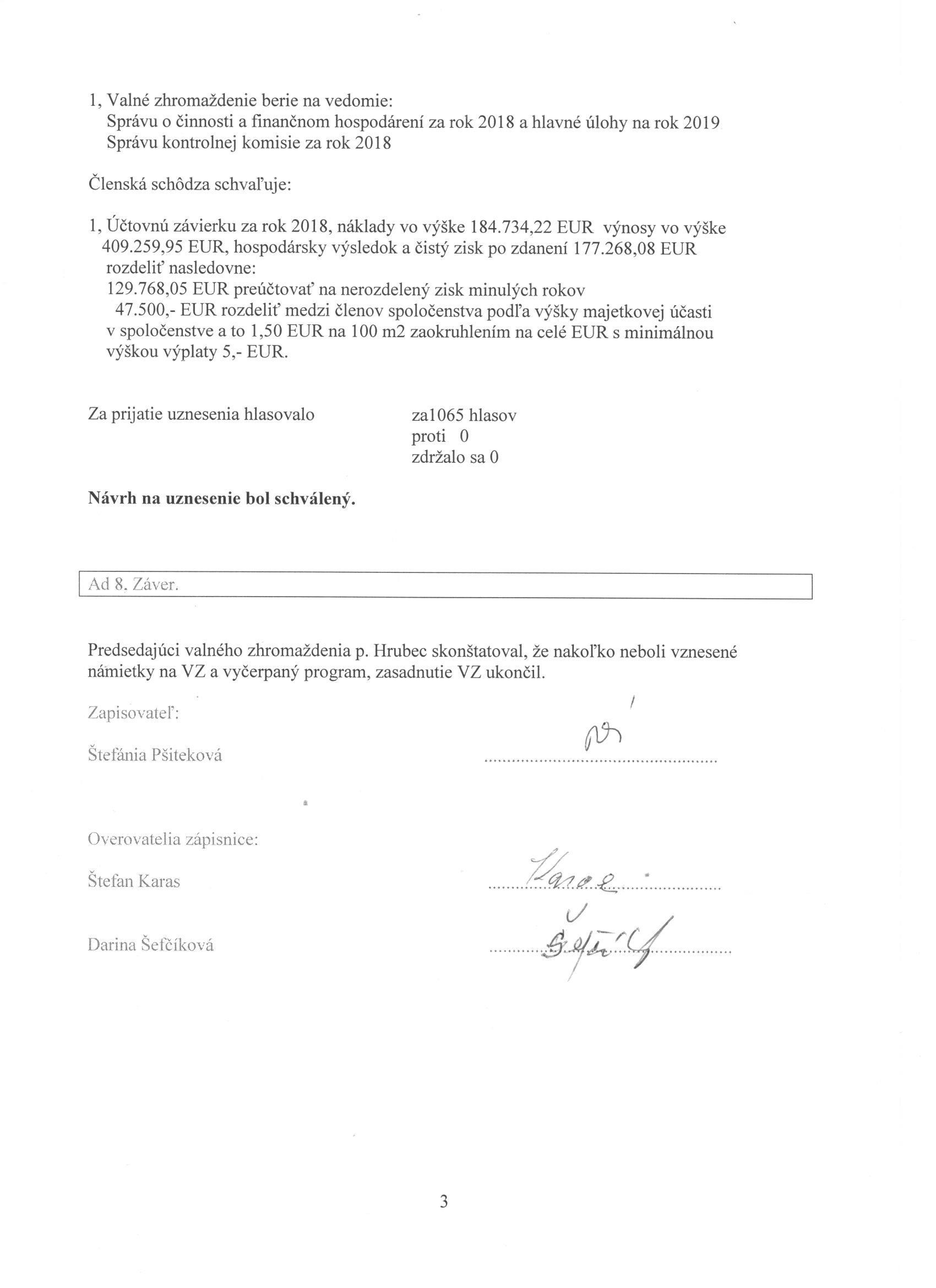 • Zápisnica zo zasadnutia výročnej členskej schôdze Urbárskeho Družstva 2019