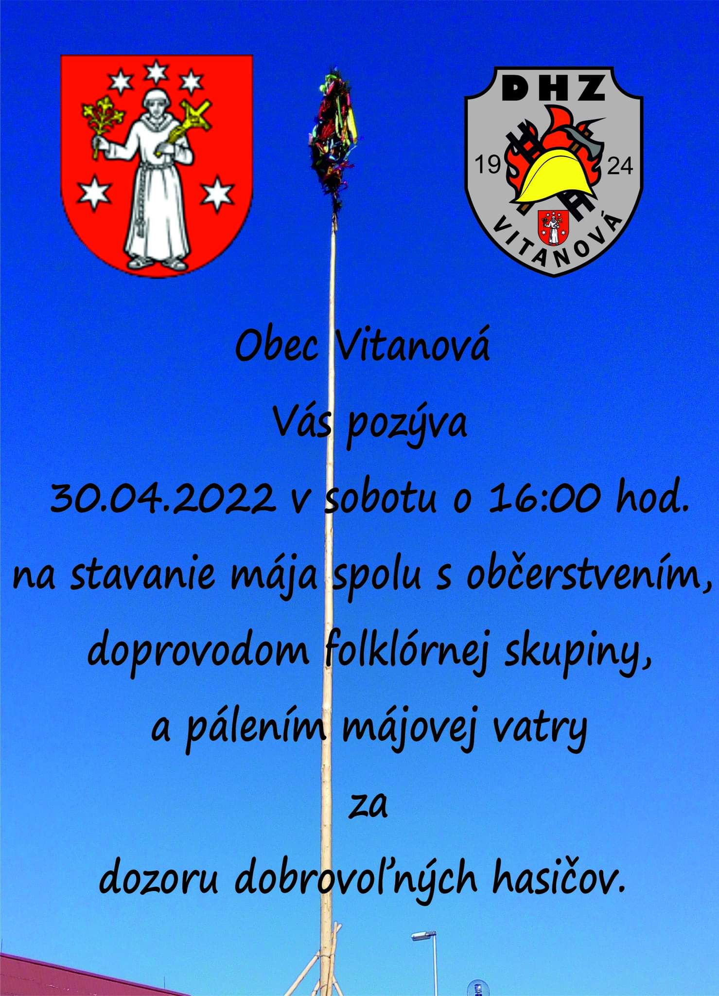 Srdečne Vás pozývame na akciu "Stavanie mája", ktorá sa uskutoční dňa 30. apríla ( sobota) o 16.00 hod v strede obce